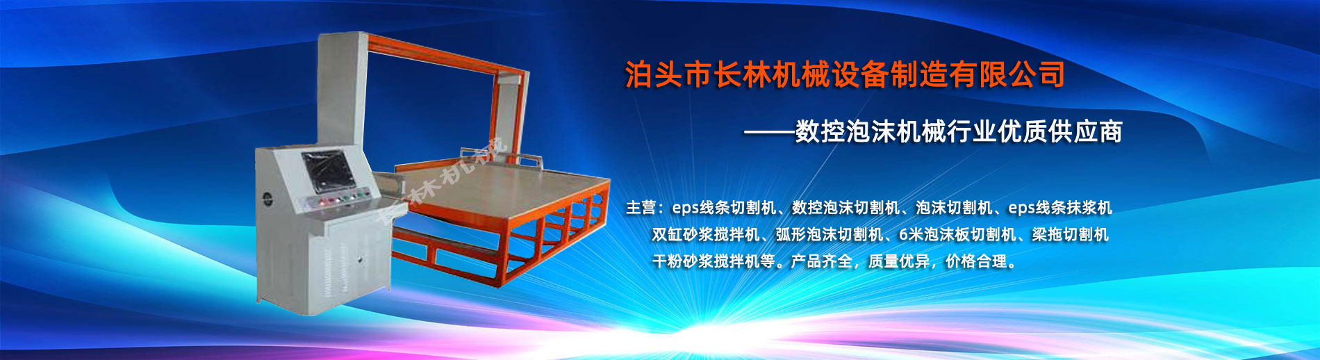 泊頭市長(zhǎng)林機(jī)械設(shè)備制造有限公司座落于河北省泊頭市開發(fā)區(qū),地處北京、天津、濟(jì)南、石家莊中心位置。京滬高速、京滬鐵路、106國道、104國道穿行于本市,交通便利。 本公司是集多功能數(shù)控泡沫切割機(jī)的自主研發(fā)、生產(chǎn)、銷售和服務(wù)于一體的企業(yè),eps線條設(shè)備,數(shù)控泡沫切割機(jī),發(fā)泡陶瓷切割機(jī),eps線條切割機(jī)銷往全國各地,并開辟了國際合作的廣闊渠道。創(chuàng)新不斷的長(zhǎng)林?jǐn)?shù)控機(jī)械有限公司經(jīng)過幾年的不斷研究,完善了建筑裝飾構(gòu)件的配套設(shè)備和自動(dòng)化設(shè)備,由過去手工生產(chǎn)到半自動(dòng)生產(chǎn)發(fā)展到現(xiàn)在的CNC控制的全自動(dòng)零誤差數(shù)控泡沫切割機(jī)床。不但讓客戶在交貨期上面爭(zhēng)取了時(shí)間而且···